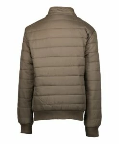 This puffer jacket features a removable hood and ribbing on the hem and cuffs. Zip pockets on the front and sleeve.