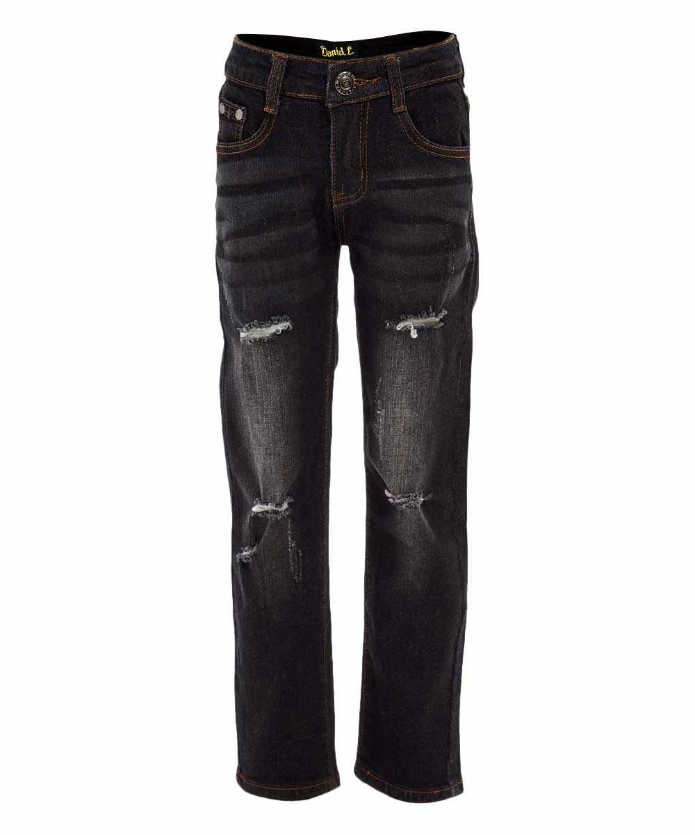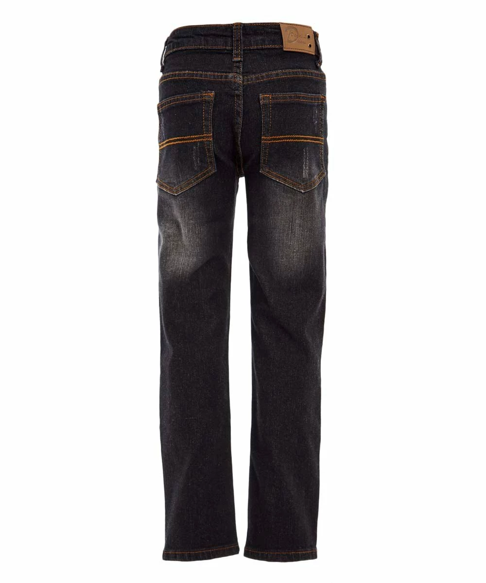 Accommodate your growing one’s busy behavior with these straight-leg denim jeans that are distressed for a well-worn look.
