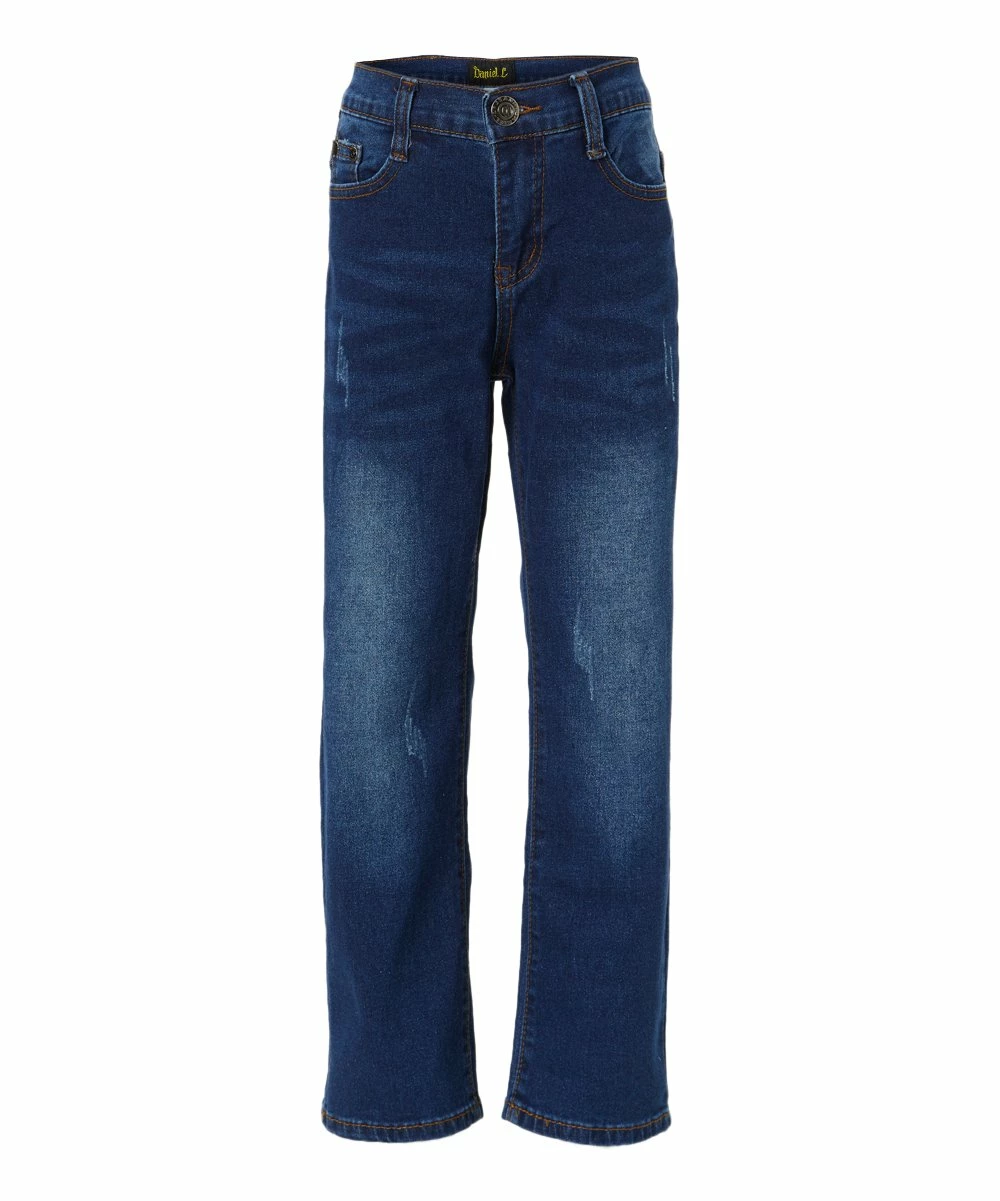 Versatile dark-wash jeans that feature a classic straight-leg cut.