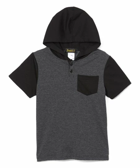 Comfortably crafted with soft cotton and contrasting colors, this hooded henley brings casual style to their warm-weather wardrobe.