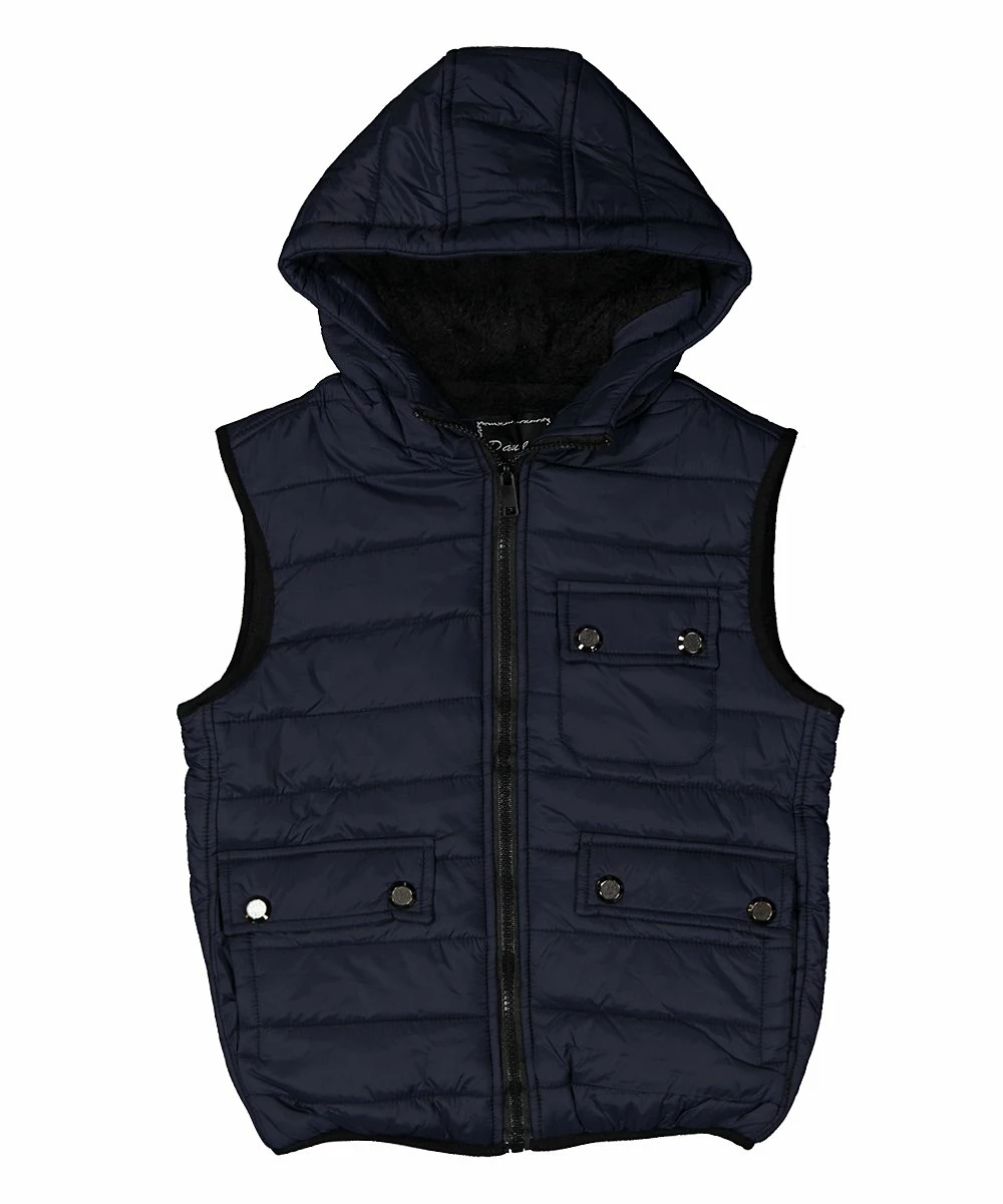 Update your kiddo’s cool weather ensembles with this vest featuring a hood and three front pockets for storing essential items and keeping hands warm. A classic puffer design adds extra warmth and timeless style to the look.