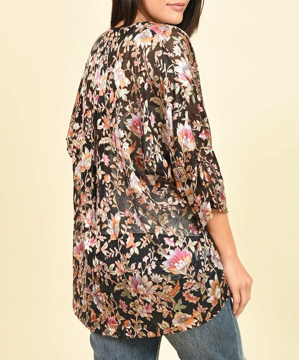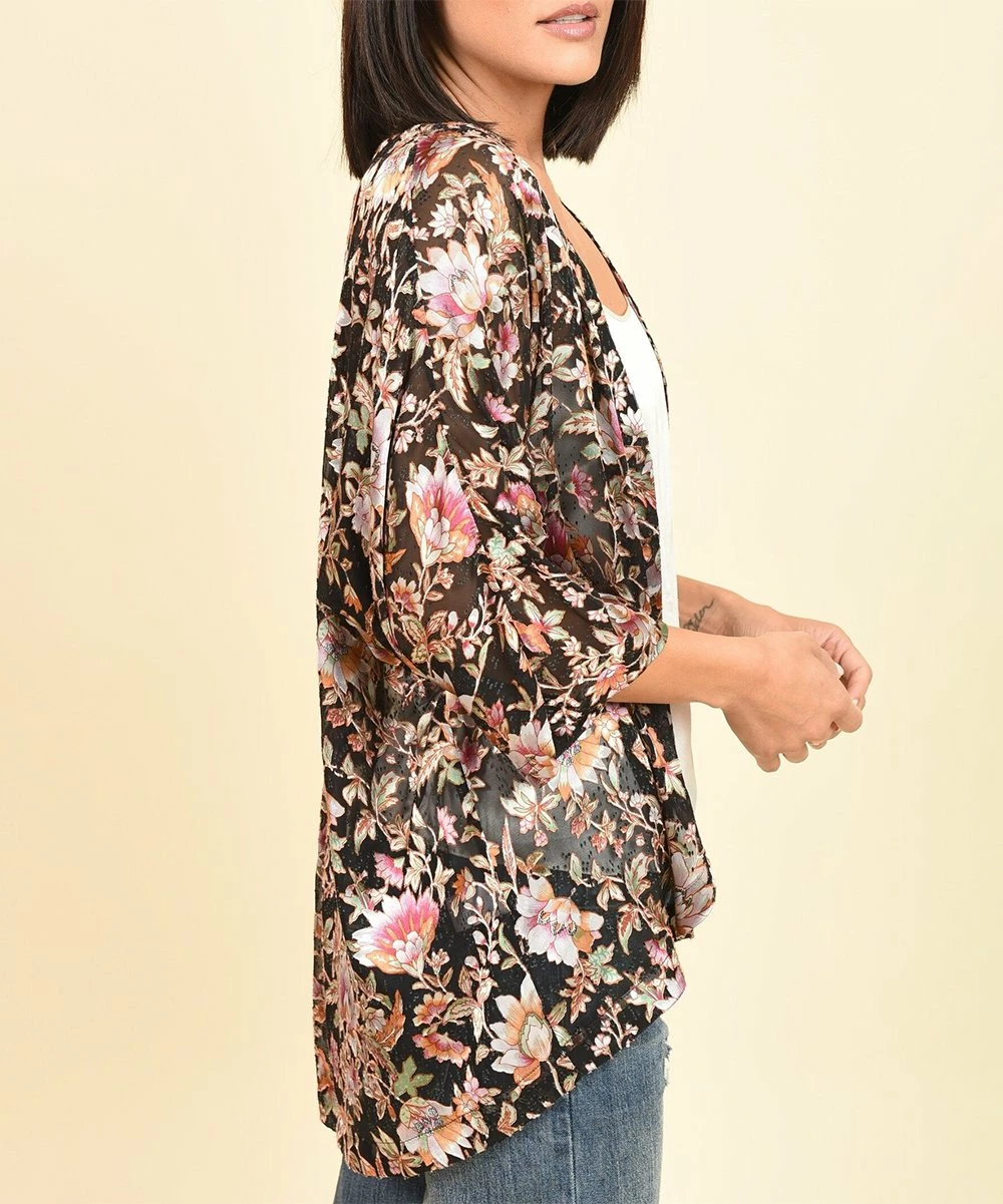 Layer your look with the just the right amount of warmth courtesy of this lightweight satin burnout cardigan.
