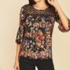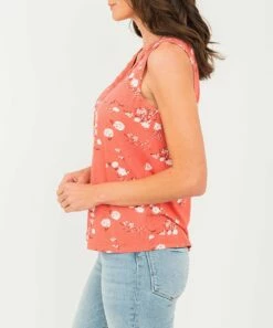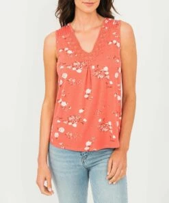 Enhance your professional and weekend wardrobe with some lightweight layering options like this vibrant floral top finished with delicate crochet accents and a breezy sleeveless cut.