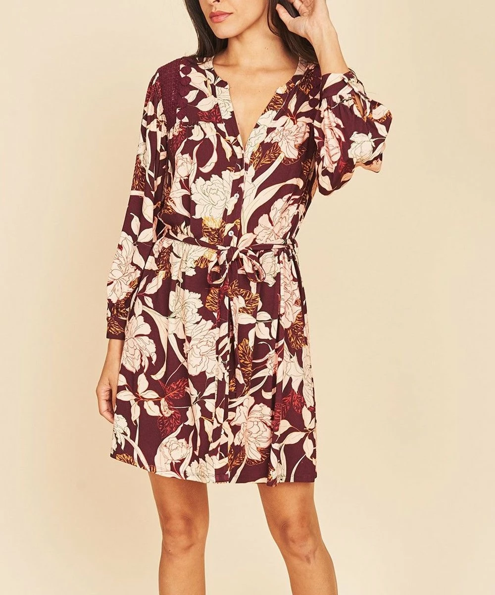 Strut your stuff in this colorful shirt dress updated with a lively print and waist-cinching tie.
